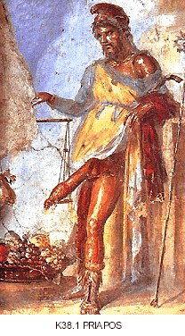 Los antiguos griegos rezaban a afrodita que significa “surgida de la espuma del mar” ya que la mitología griega cuenta su nacimiento del mar de Chipre luego que Crono cortase los genitales de Urano ( su padre ), su sangre y semen cayeron al mar y comenzaron a generar espuma la cual se originó Afrodita. Sus poderes eran inmensos: protege a los esposos , fecunda los hogares y esta presente en los partos. También simboliza la pasión desenfrenada que destruye uniones legítimas e incita a los mortales a toda clase de vicios ( Es causante de la guerra de Troya según Homero en su Ilíada al presentarle a París a Helena de Troya y abrumarlo con el deseo de poseerla. (Fig 1) La mitología griega cuenta además que Afrodita engendró a Priapos, nacido con un miembro viril desmesurado, este representaba de modo general la energía reproductiva de la naturaleza, la potencia fecundadora tanto del reino animal como del vegetal (Fig 2) |