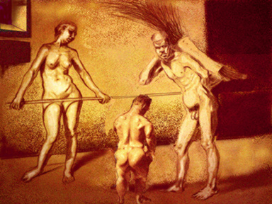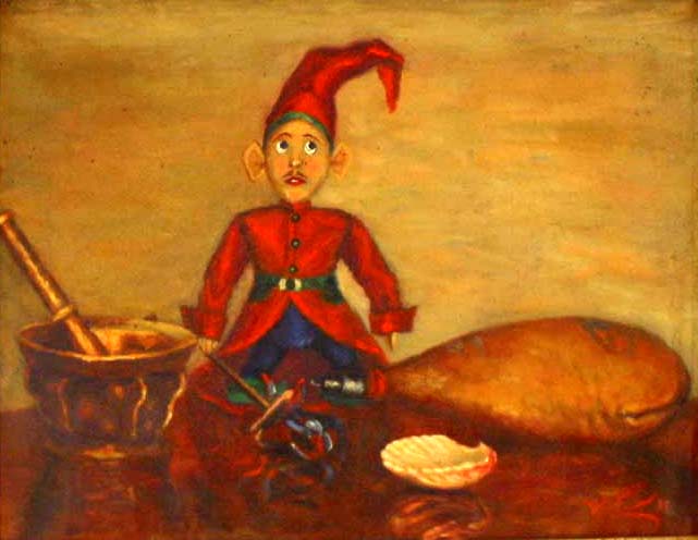 - la locura. En esta pintura de factura reciente, un enano